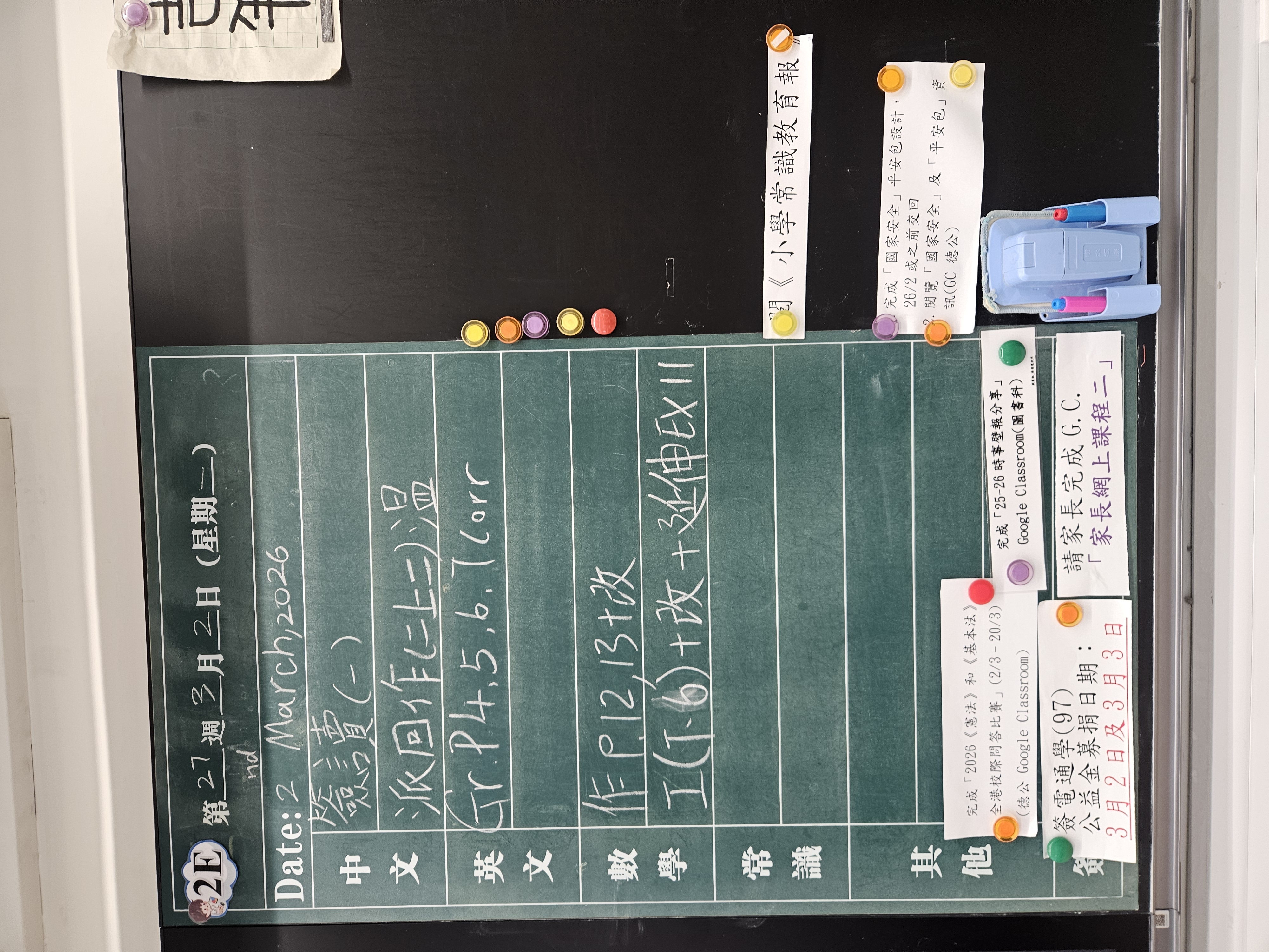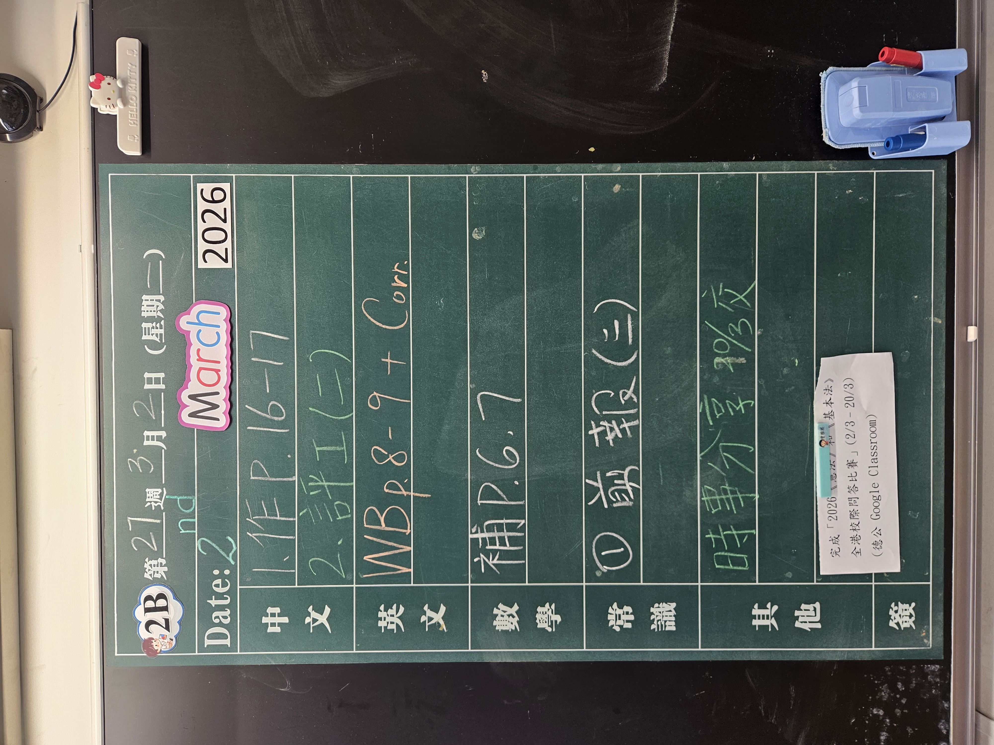 | 2B | 星期一 | 星期二 | 星期三 | 星期四 | 星期五 |