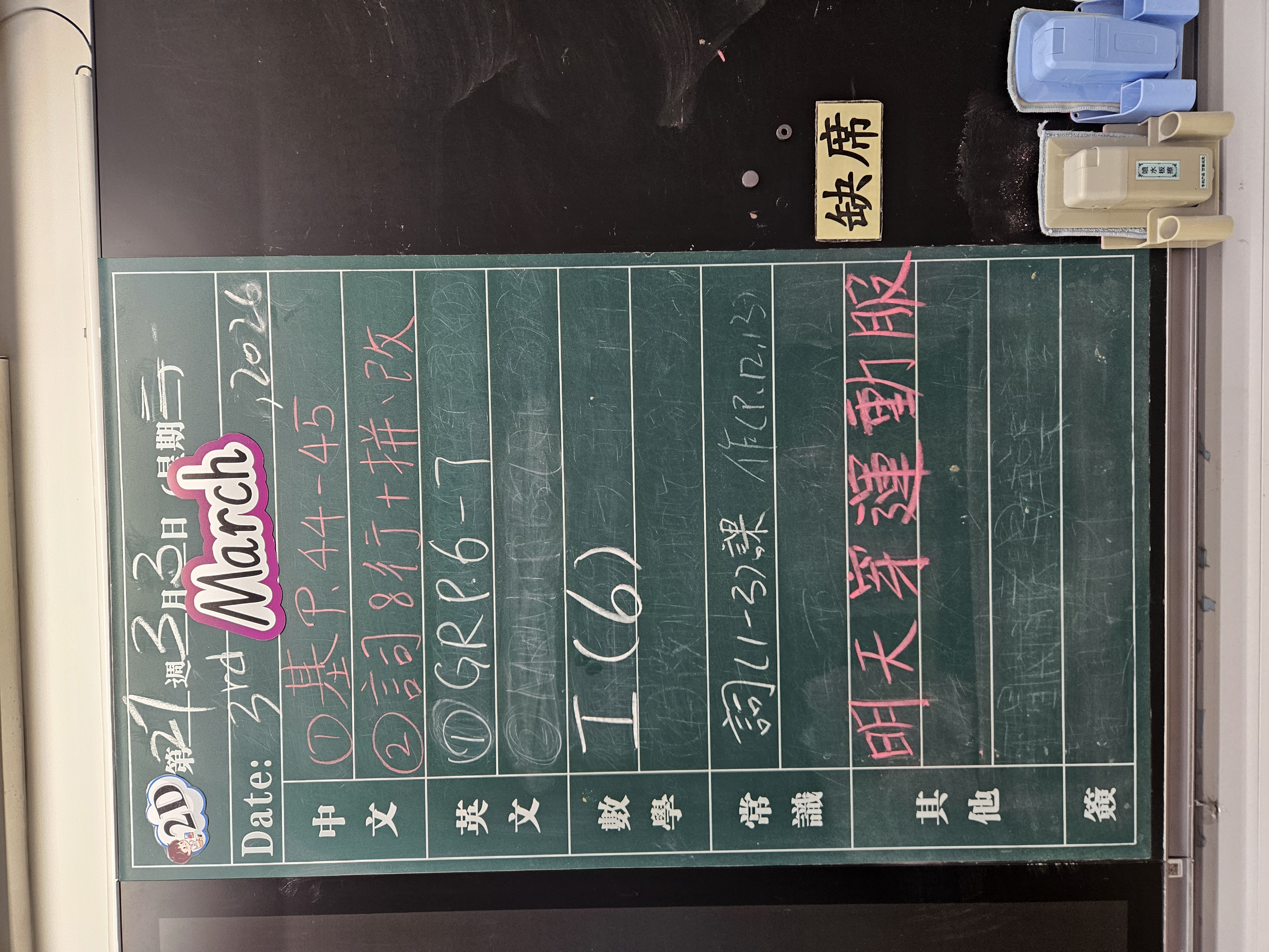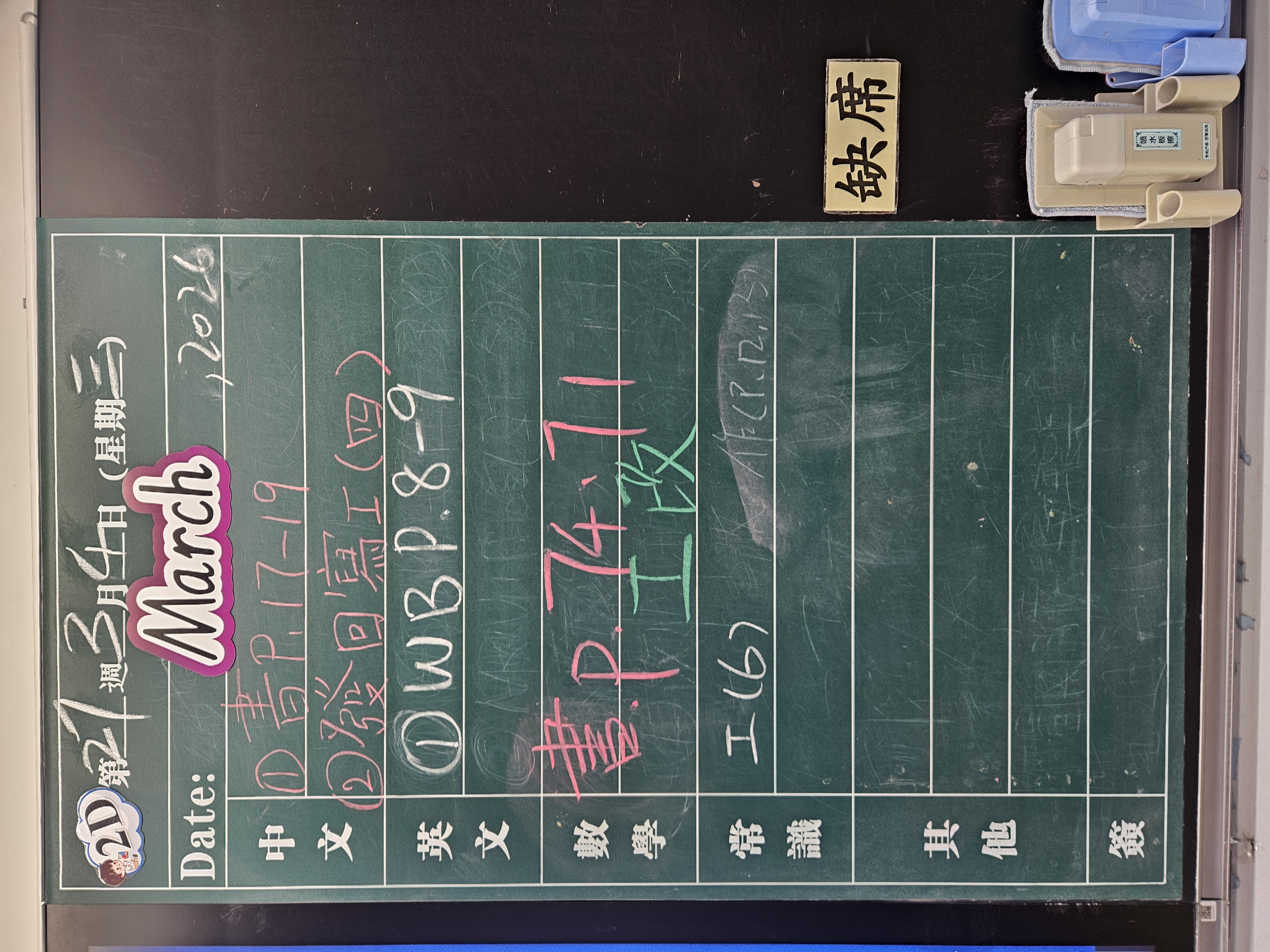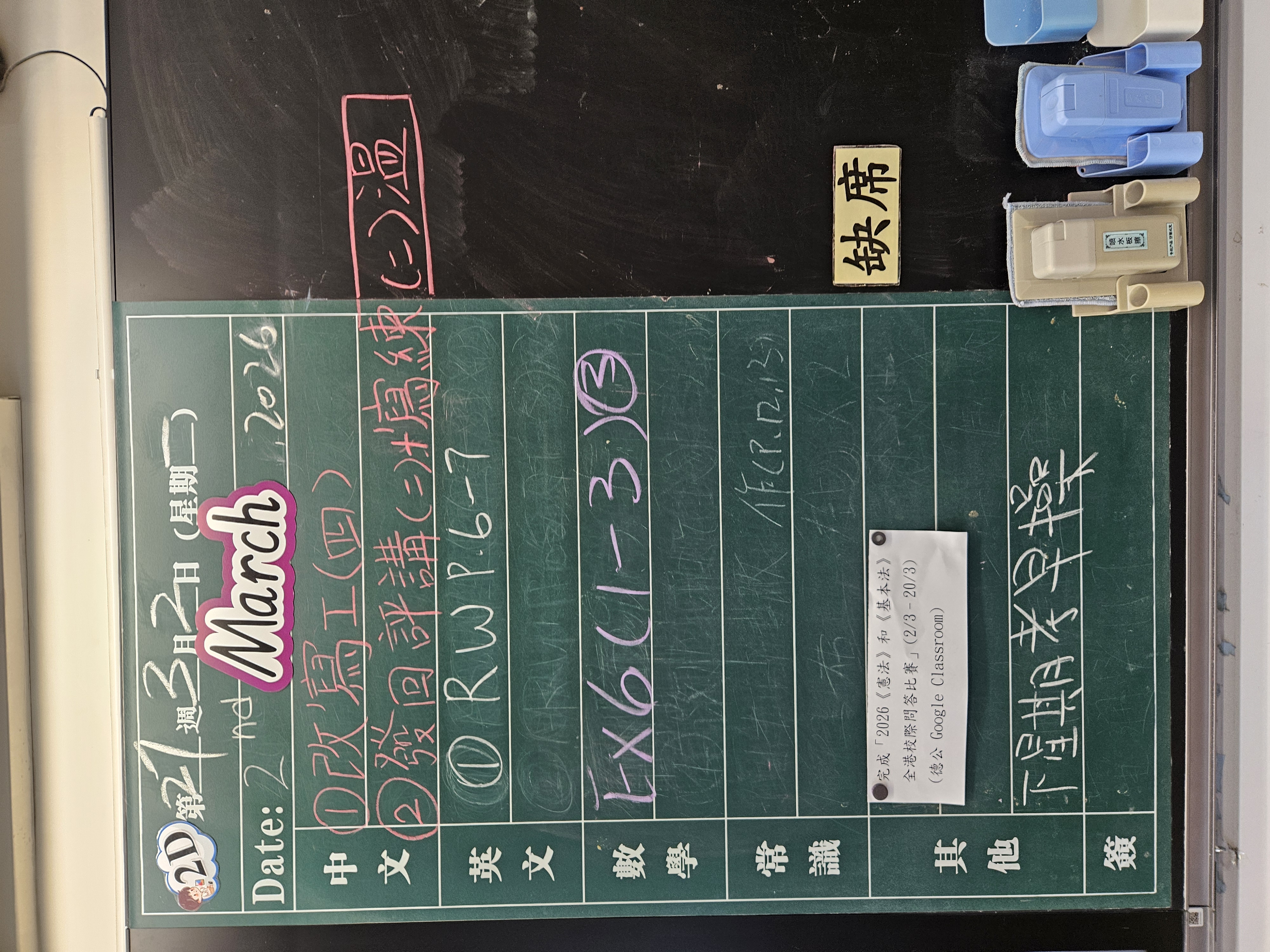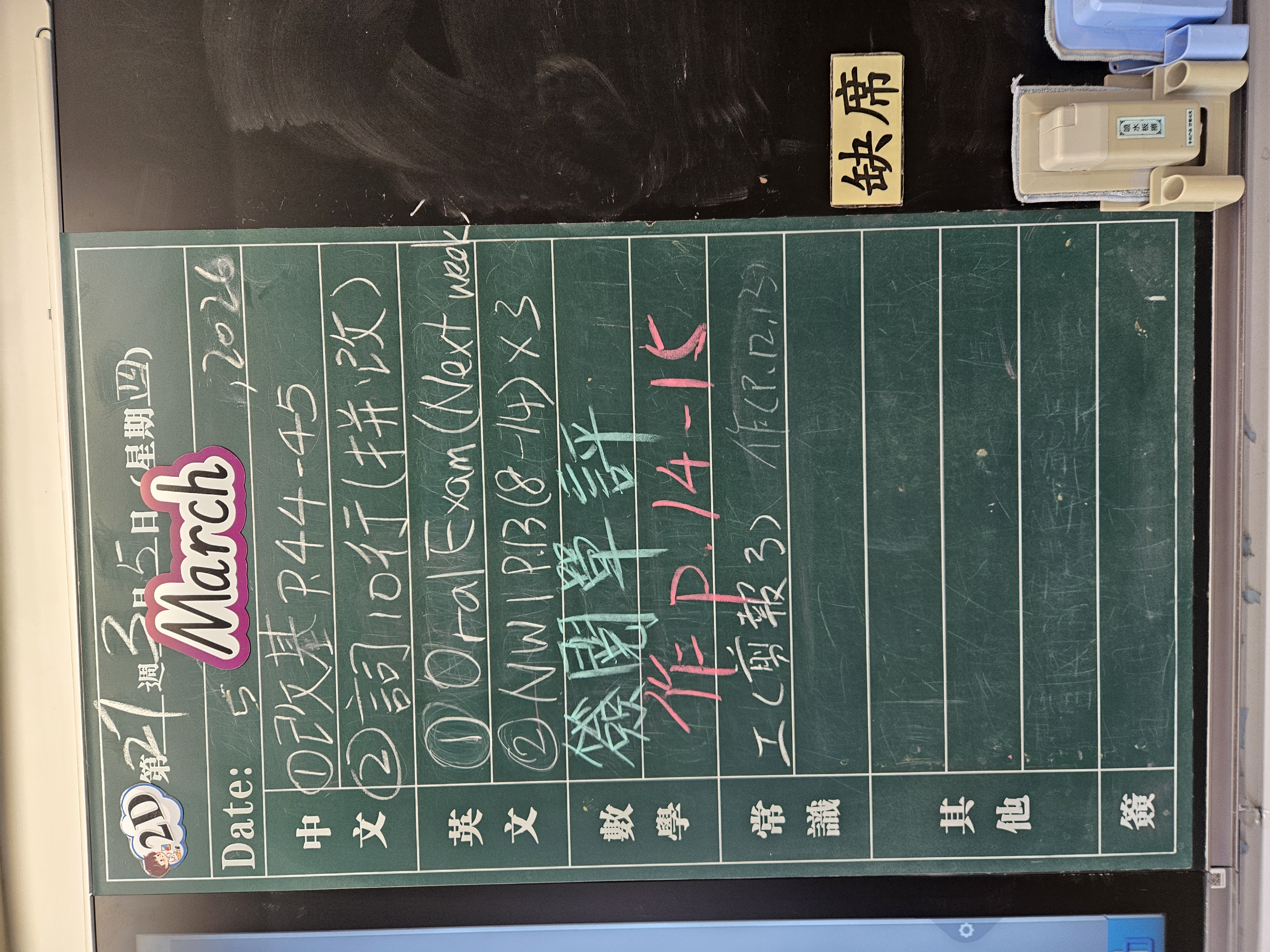 | 2D | 星期一 | 星期二 | 星期三 | 星期四 | 星期五 |