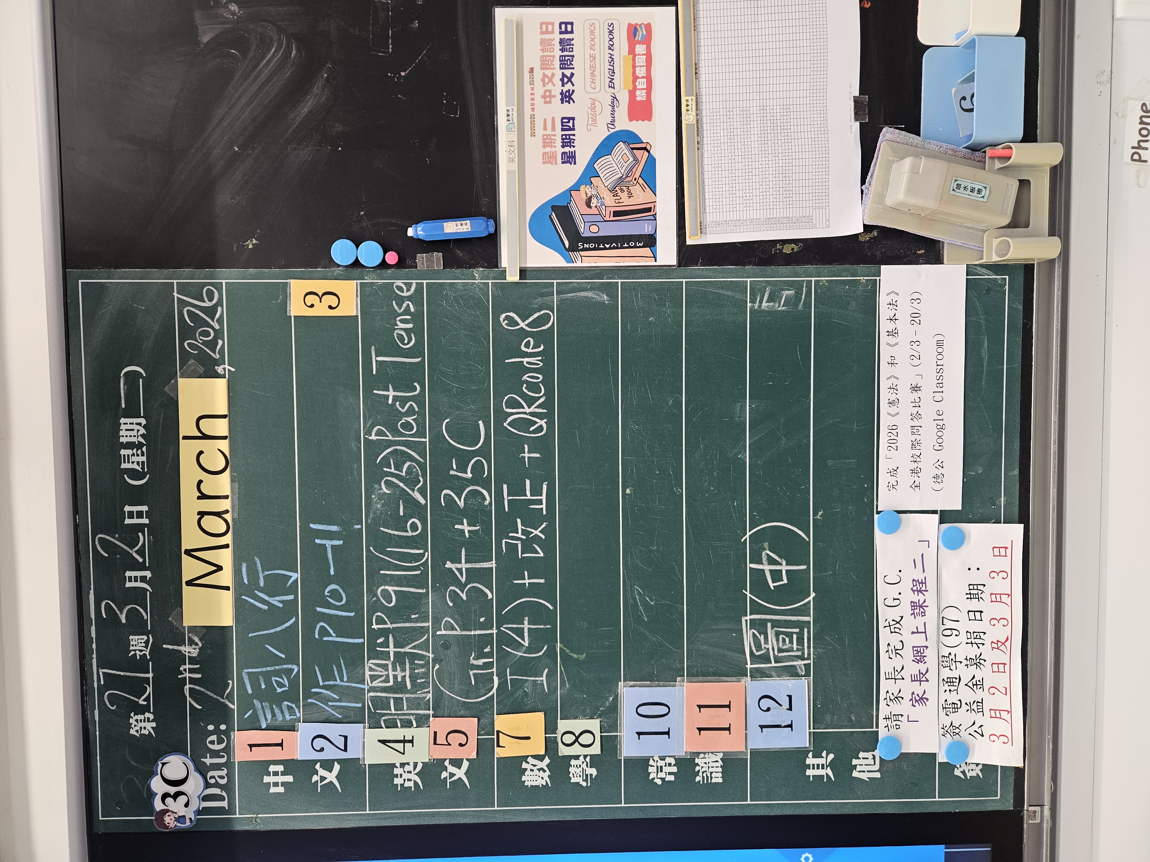 | 3C | 星期一 | 星期二 | 星期三 | 星期四 | 星期五 |