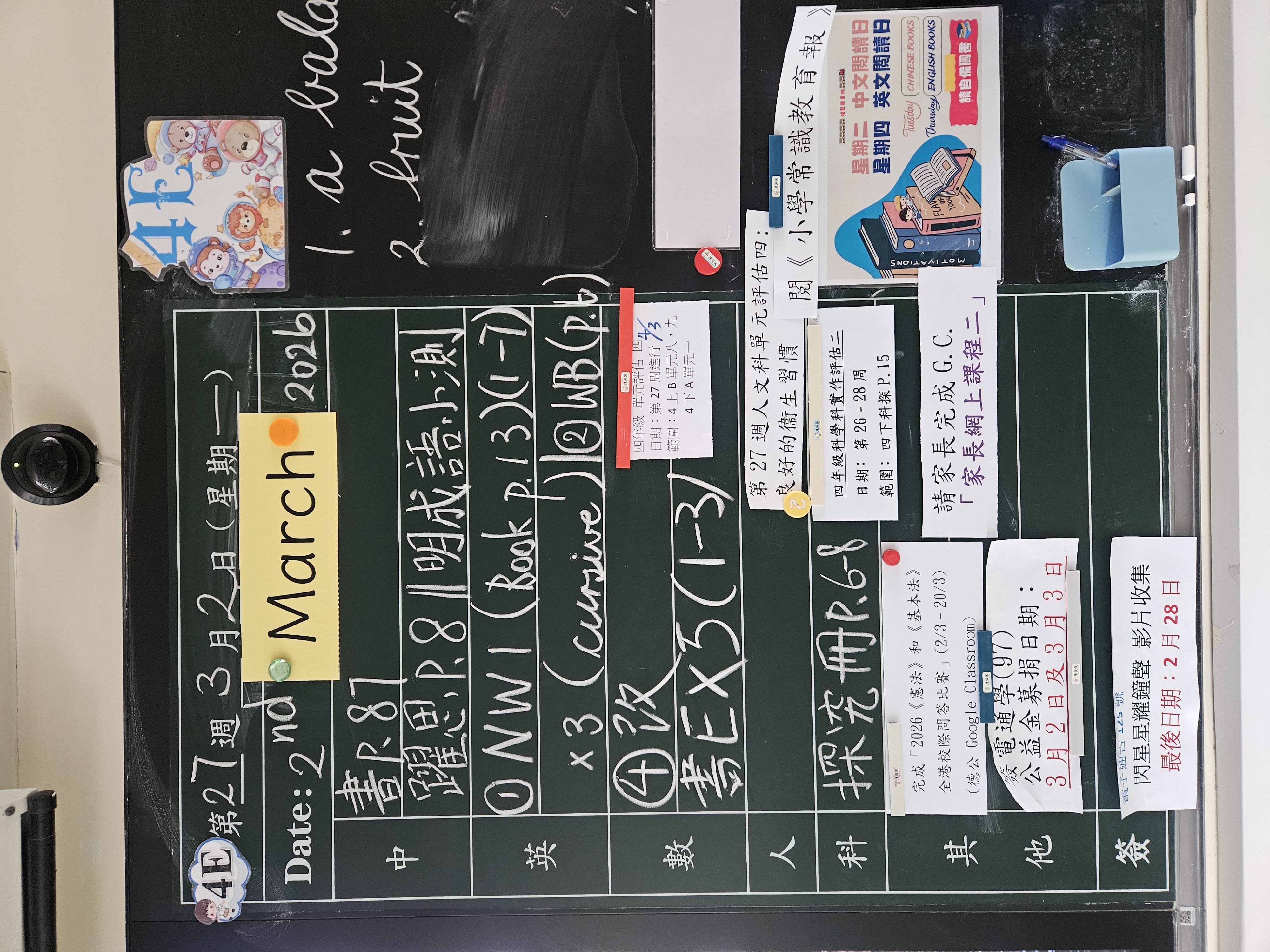 | 4B | 星期一 | 星期二 | 星期三 | 星期四 | 星期五 |