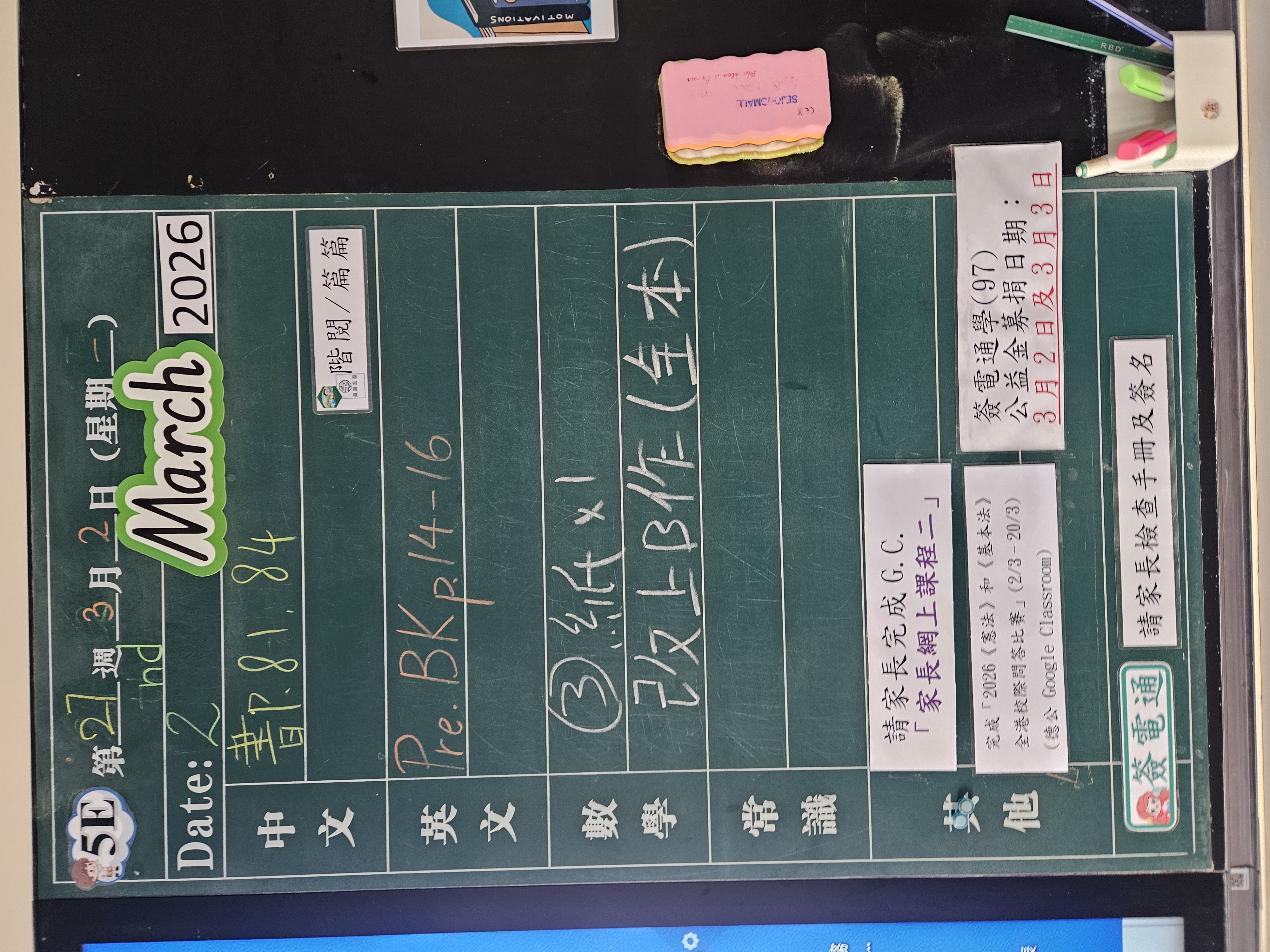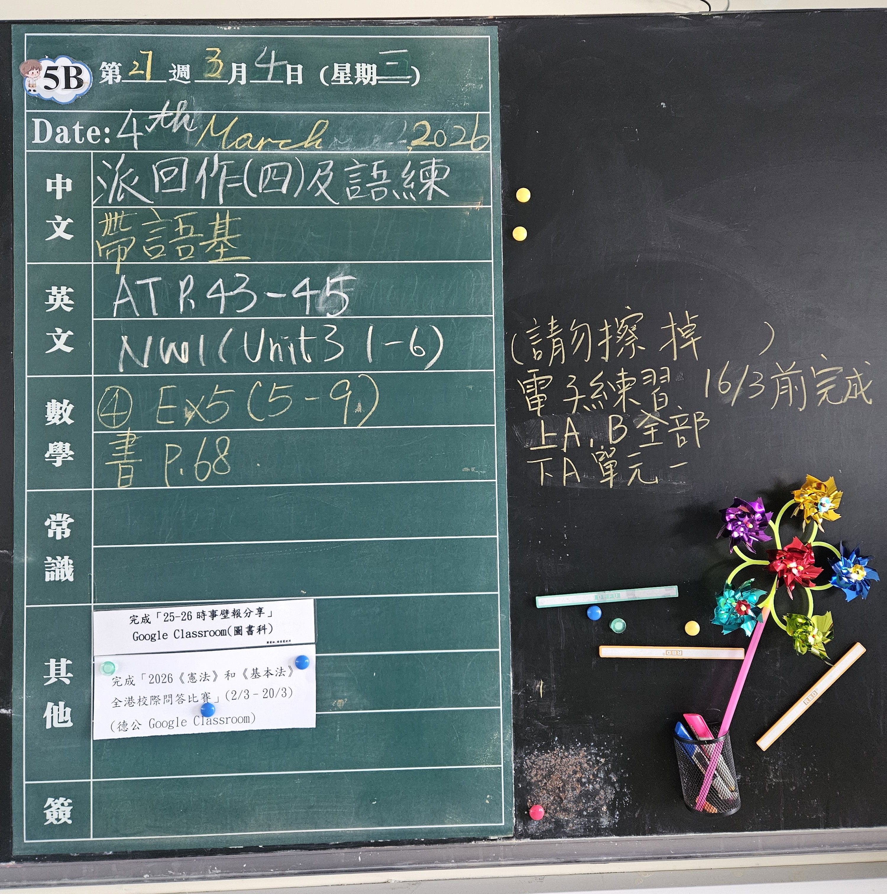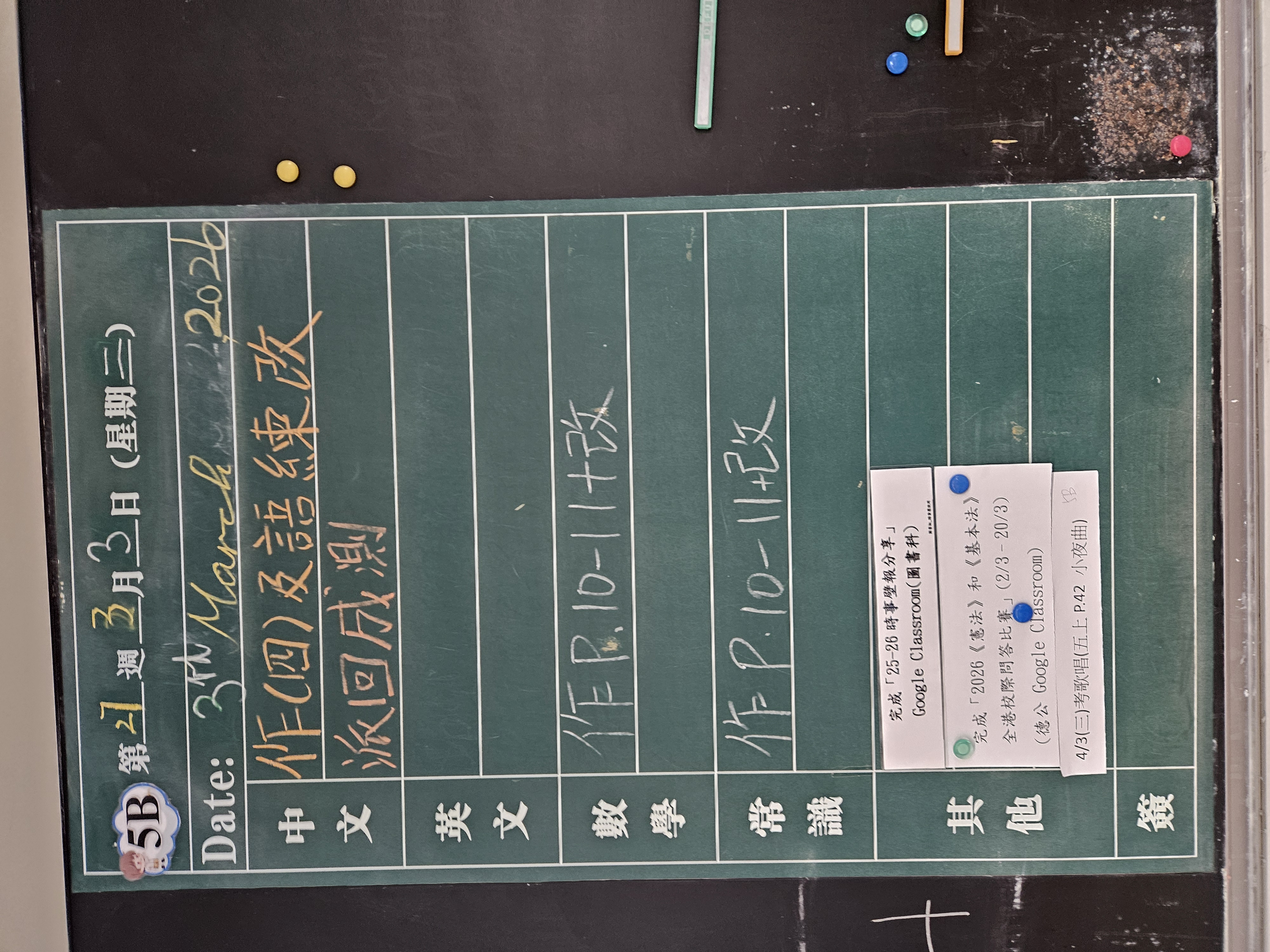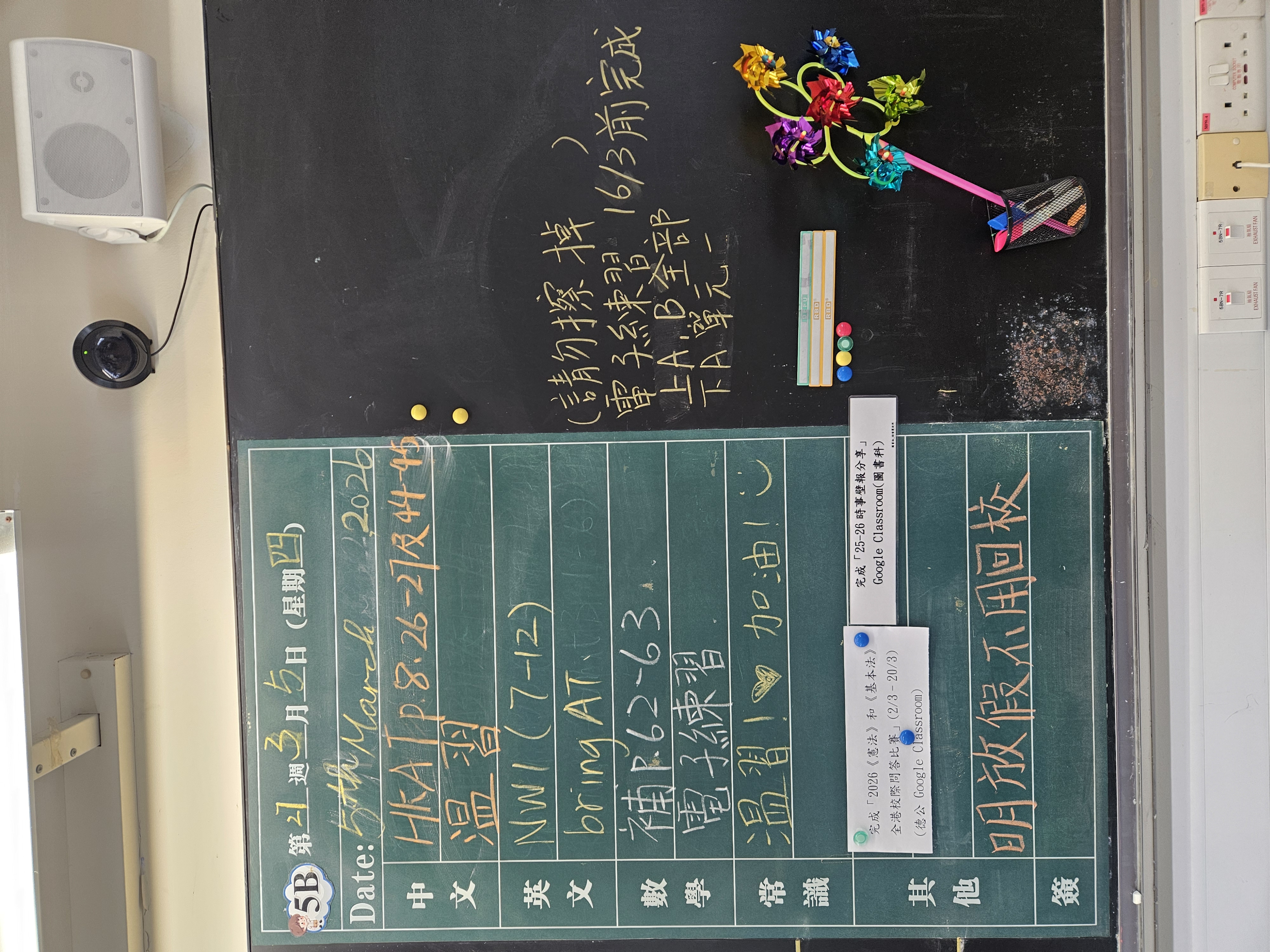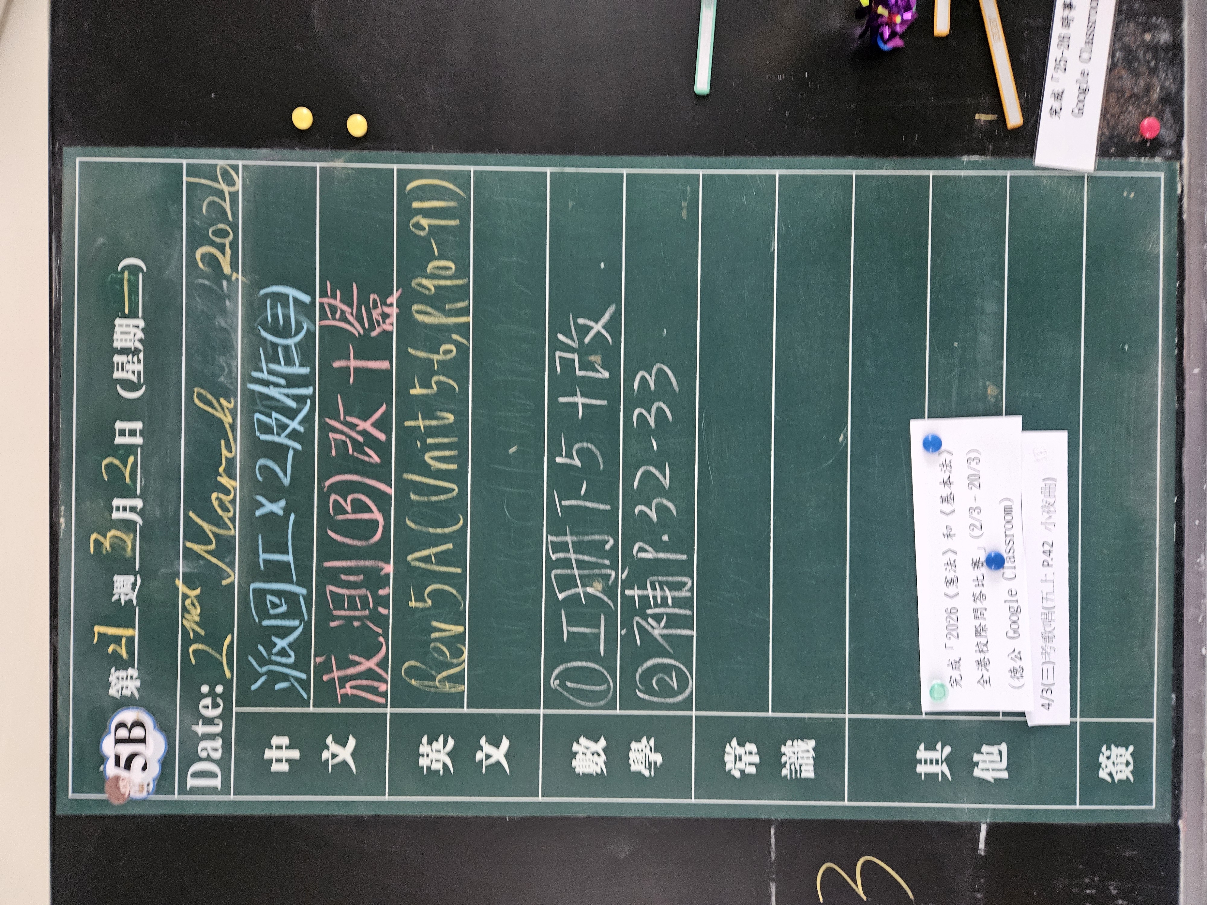 | 5B | 星期一 | 星期二 | 星期三 | 星期四 | 星期五 |