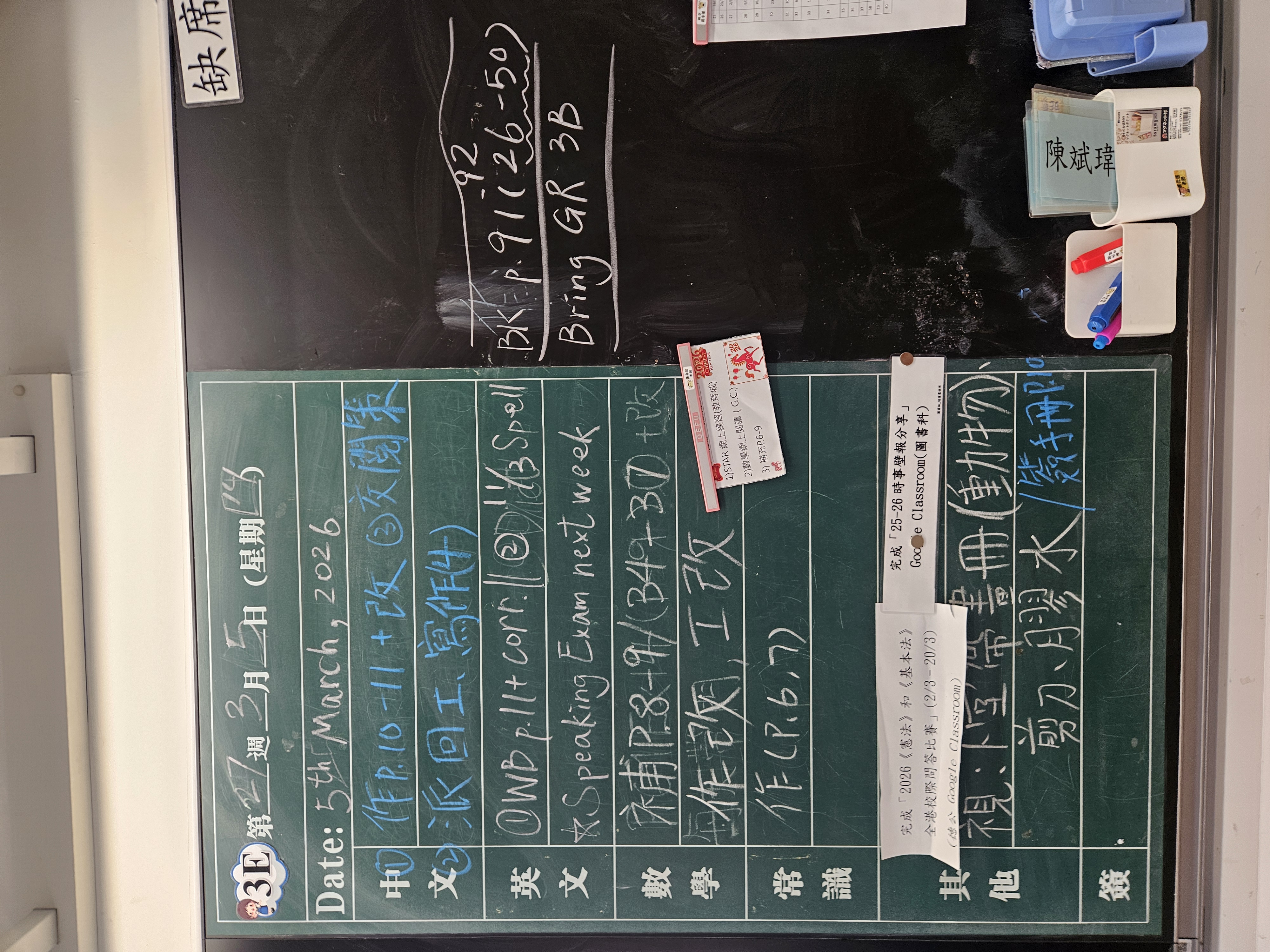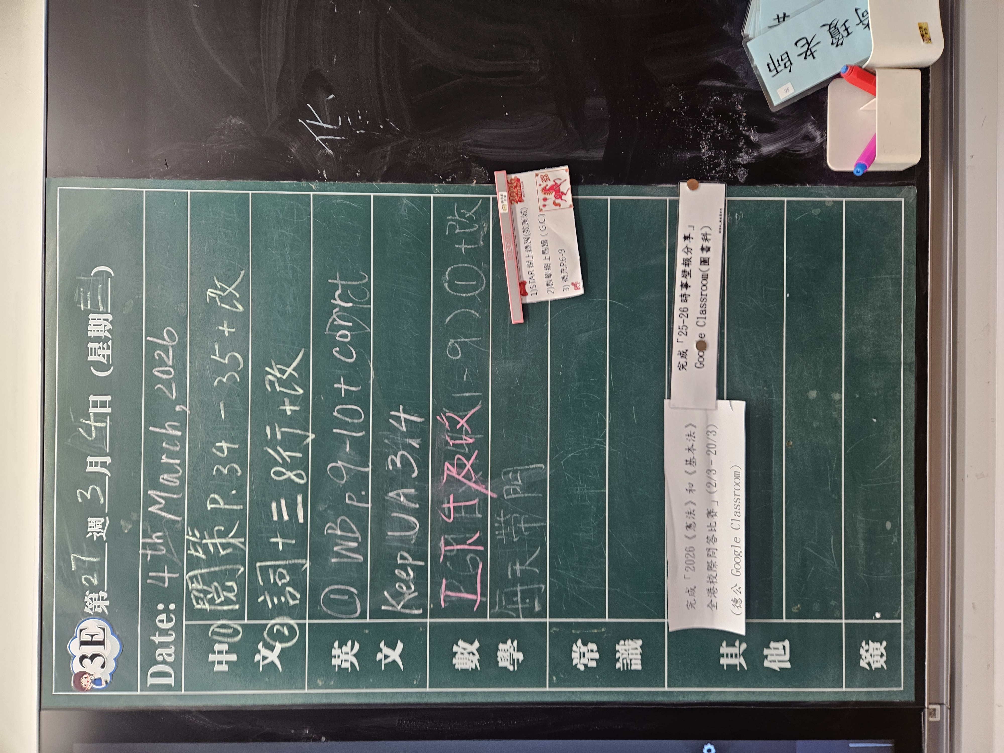 | 3E | 星期一 | 星期二 | 星期三 | 星期四 | 星期五 |