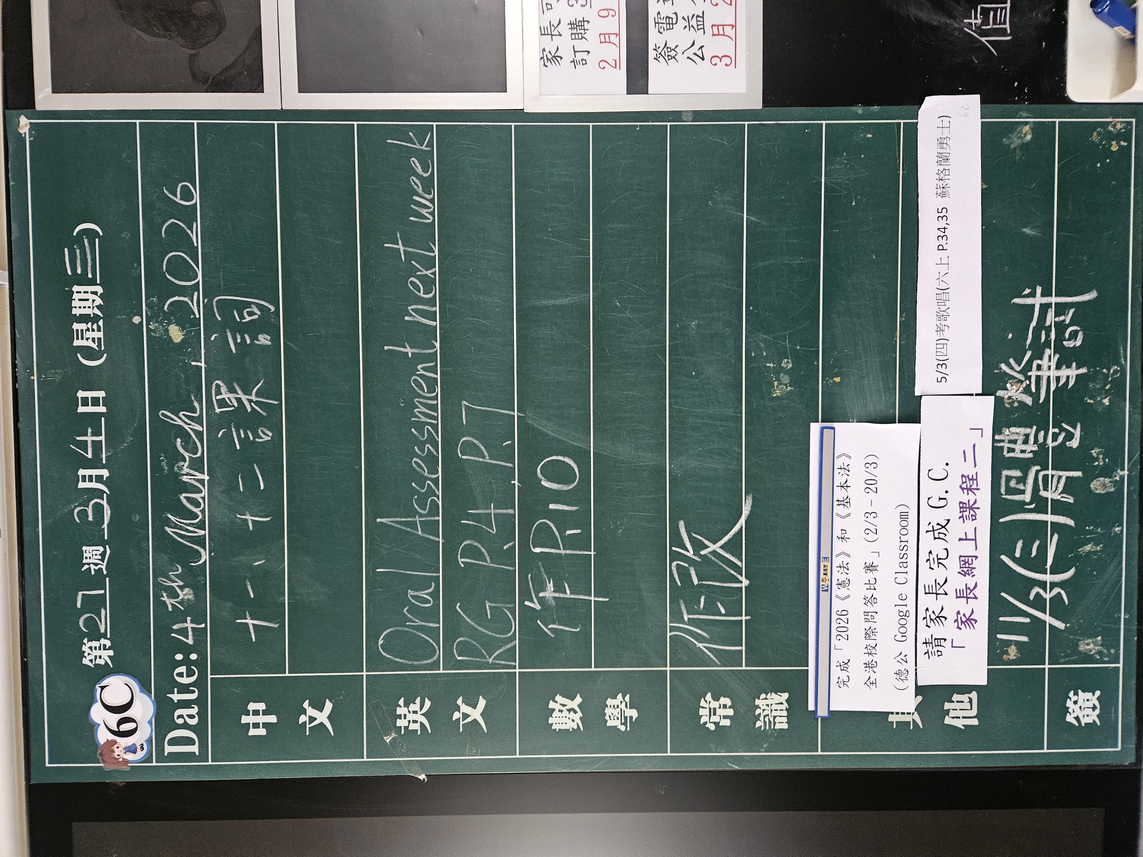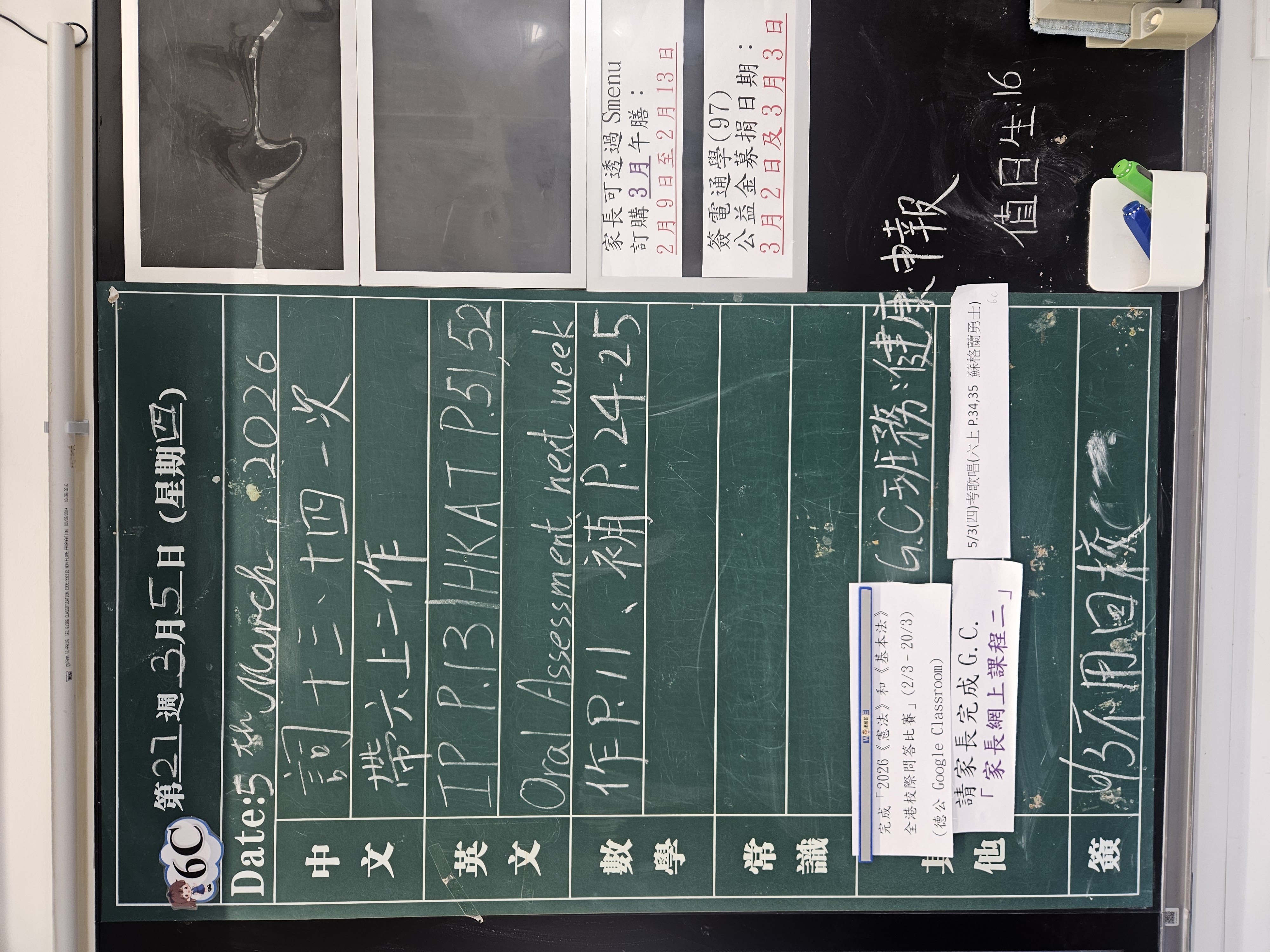 | 6C | 星期一 | 星期二 | 星期三 | 星期四 | 星期五 |